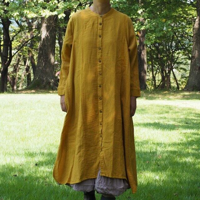 長めの丈で、ゆったりとしたシルエットが魅力のシーㇺ シャツ ワンピース