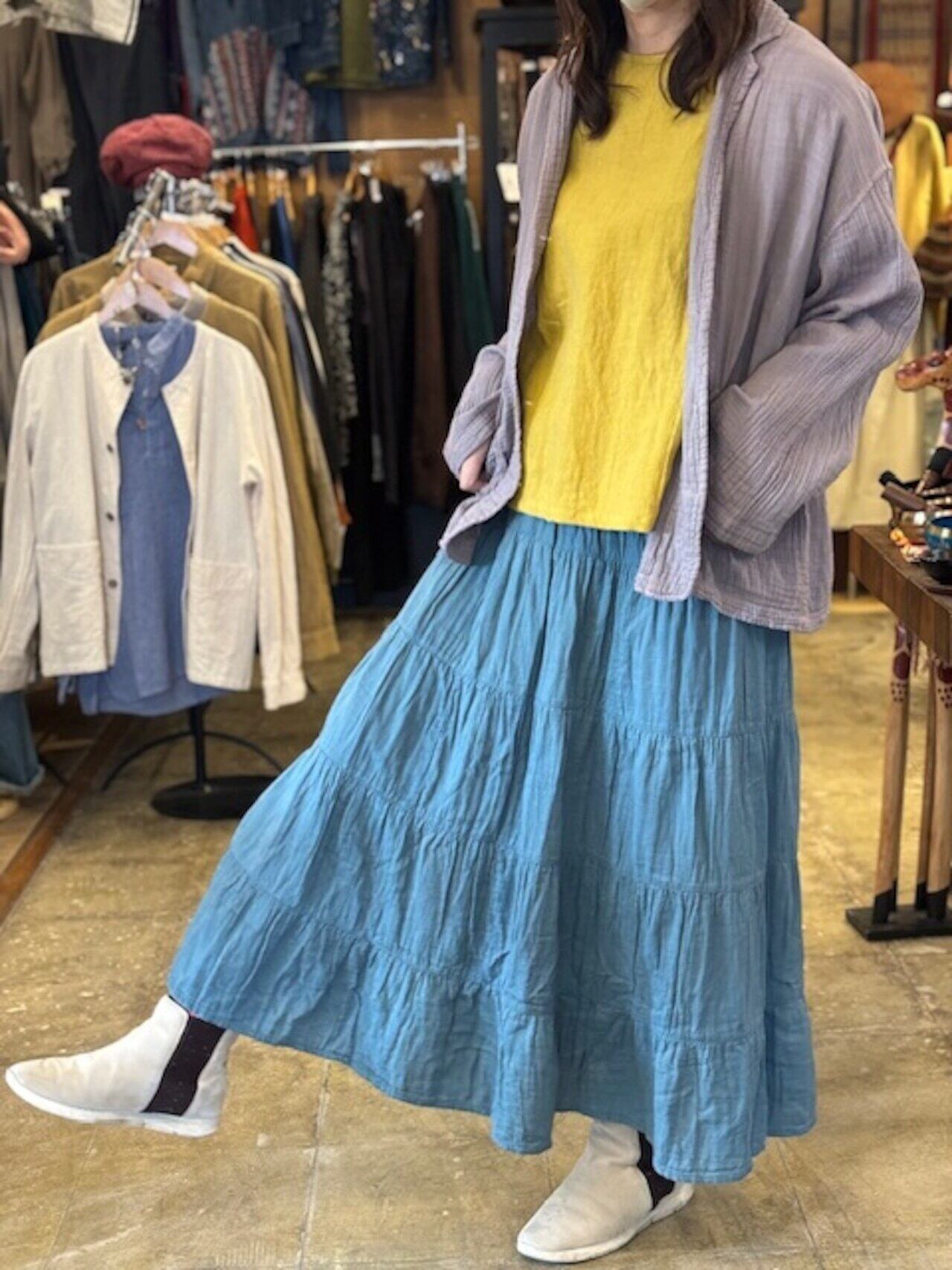 ダブルコットンのティアードスカートです。