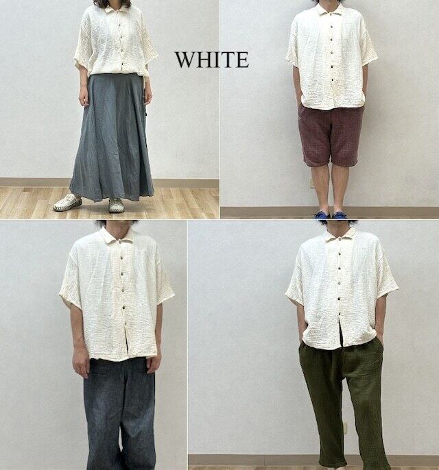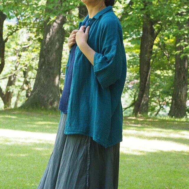 綿100%ダブルガーゼ、無地の半袖シャツです。